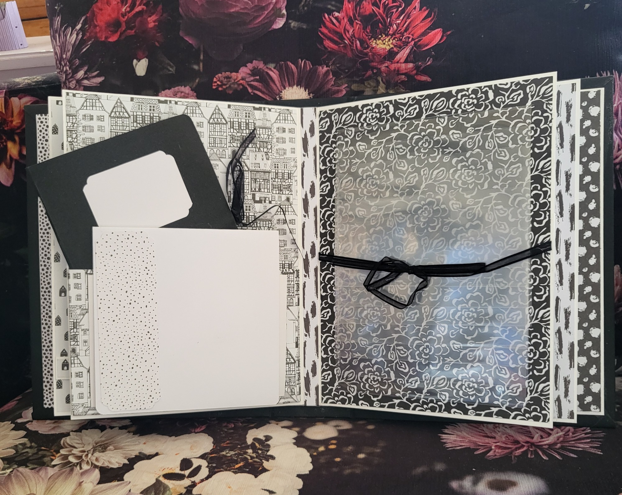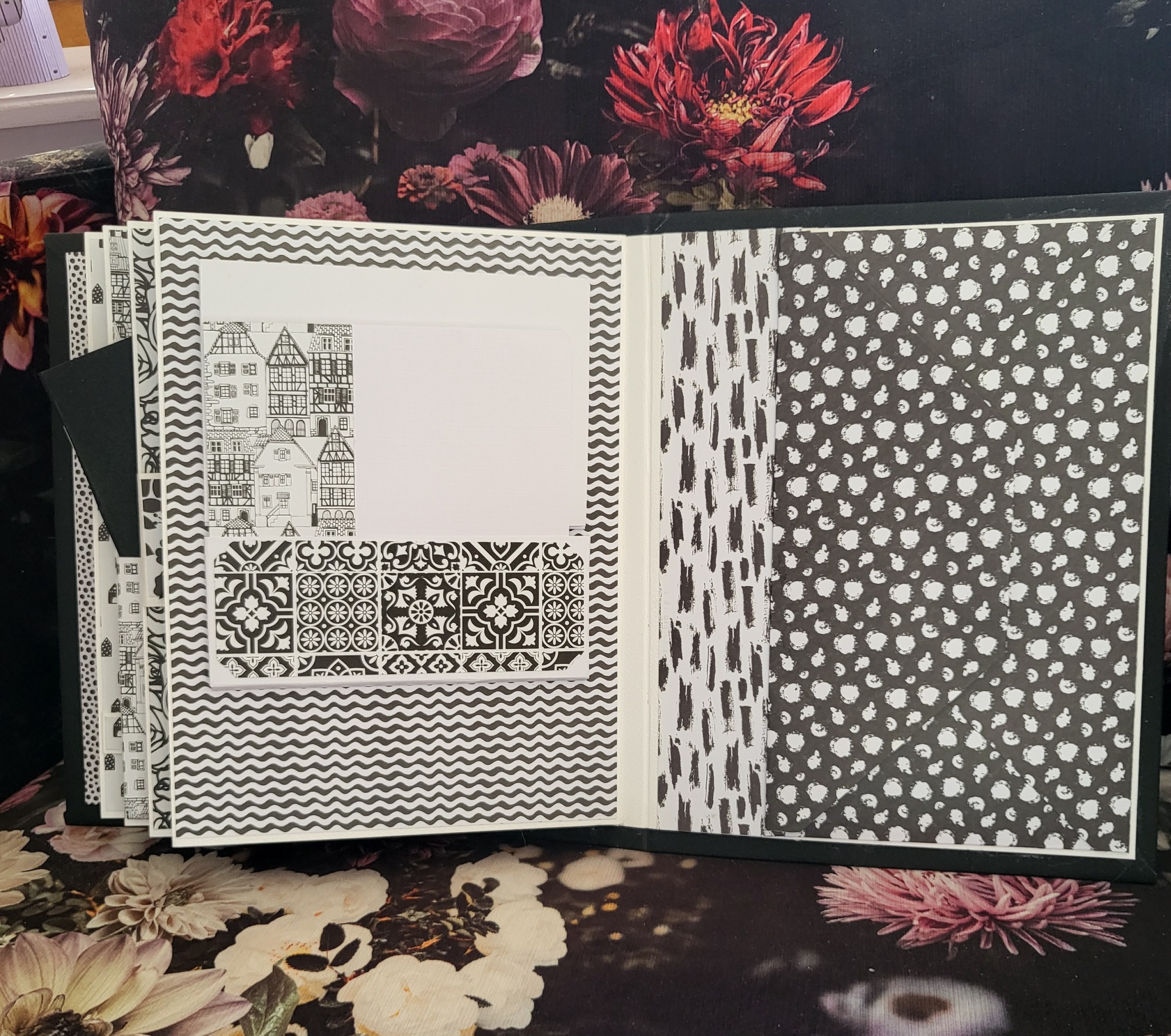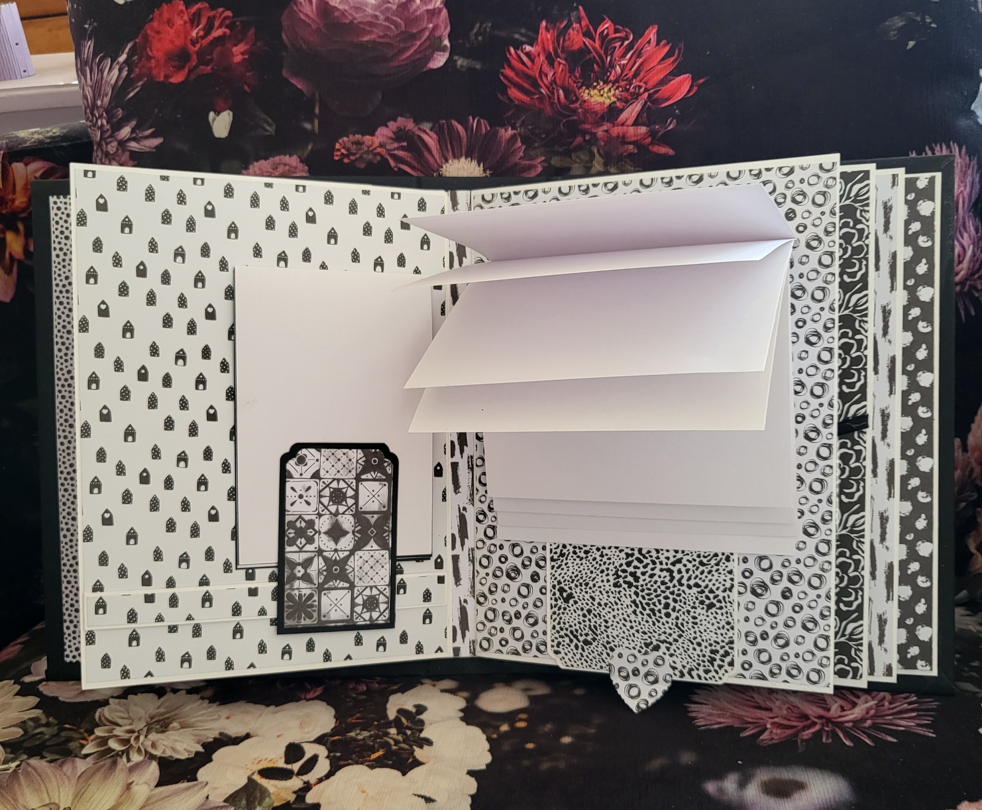 Son grand format A4 m'a permis d'installer des popup inédits dont j'ai fait les tutos sur ma chaine Macadam38. D'ailleurs, je vous conseille d'aller voir la vidéo pour mieux vous rendre compte du dynamisme de cet album. Les papiers vintage laisse place à l'imagination ... En fonction des photos et autres accessoires, ce modèle peut être associé à Harry Potter. Très contente du petit bloc à poince sur la couverture ainsi que du popup final : les bow-windows !